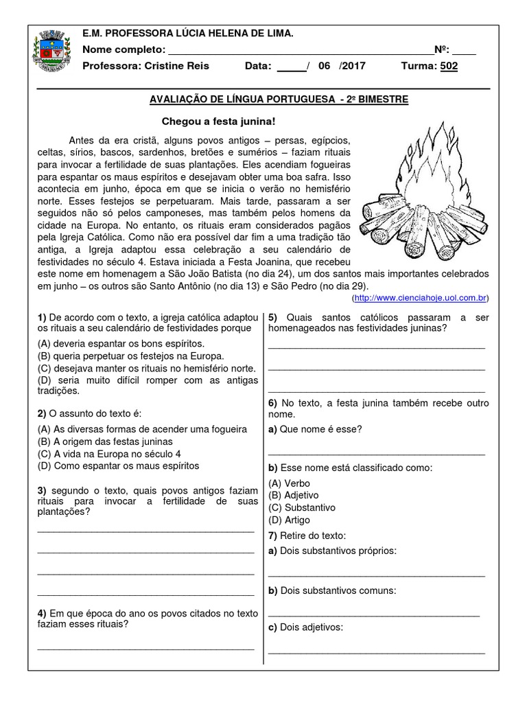 Interpretacao De Texto Tradicoes Juninas No Brasil 7º Ano Festa Vestido Vermelho