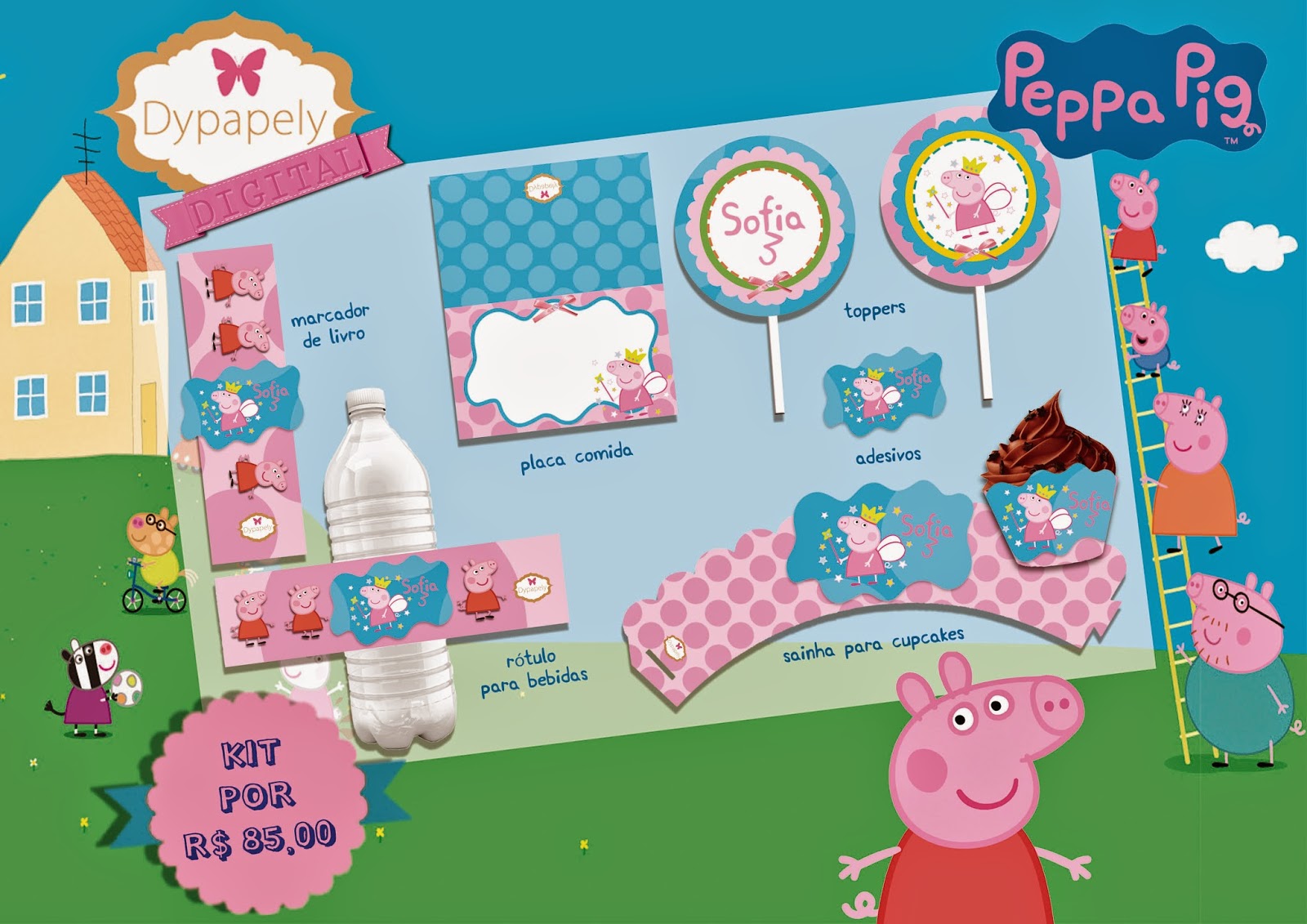 Kit Festa Personalizado Peppa Pig 50 Pecas R 159 00 Em Mercado Livre Kit Festa Mundo Bita Fazendinha