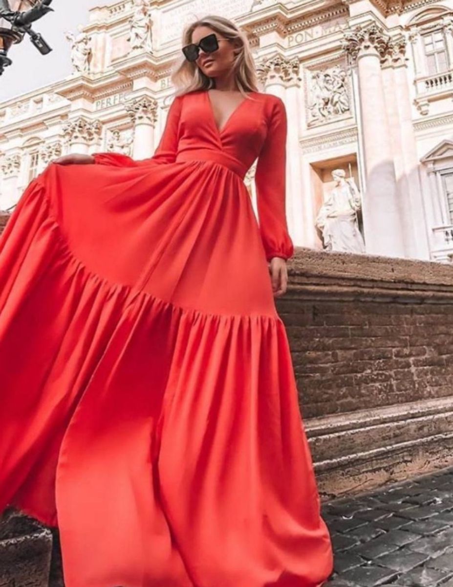 Vestido Evase Decote V Longo Franzido Manga Bufante Atual Blogueira Madrinha Casamento Festa Dia Vestido De Festa Feminino Lamour Closet Nunca Usado 35860143 Enjoei Festival Del Oriente Roma
