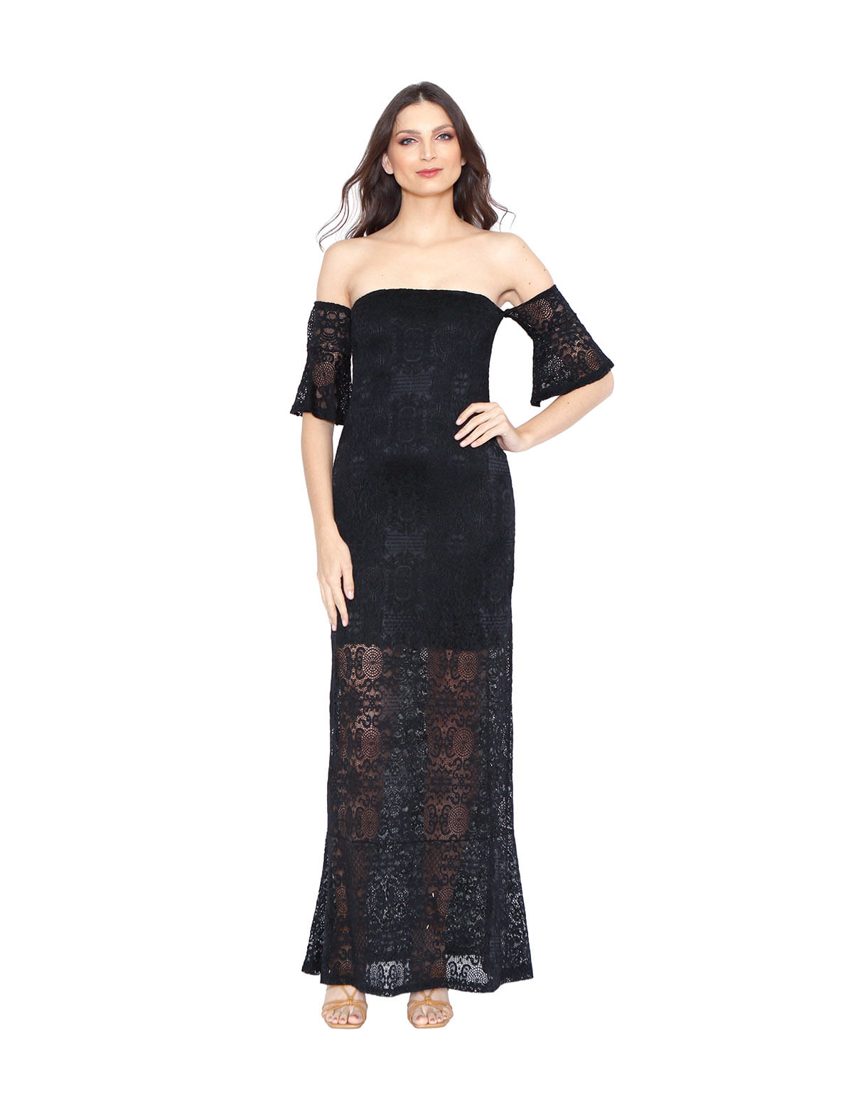 Vestido Longo Tqc Manga Flare Renda Preto Lucyinthesky Kit Festa Goiania